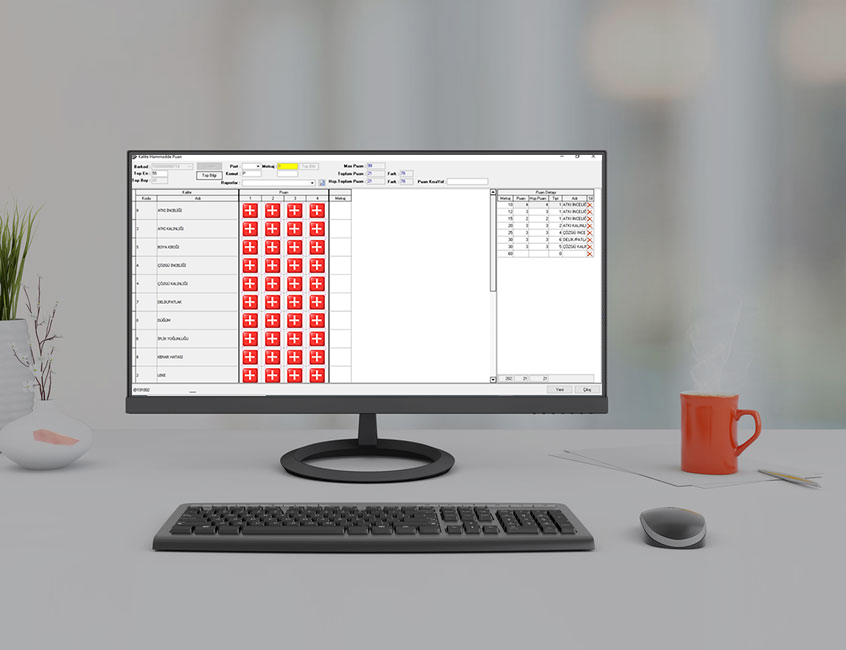 Top sarma makineleri ile entegre kalite kontrol ile dört puan sistemine uygun top hata haritalarını çıkartın, kalite kontrol problemlerinin önüne geçin.