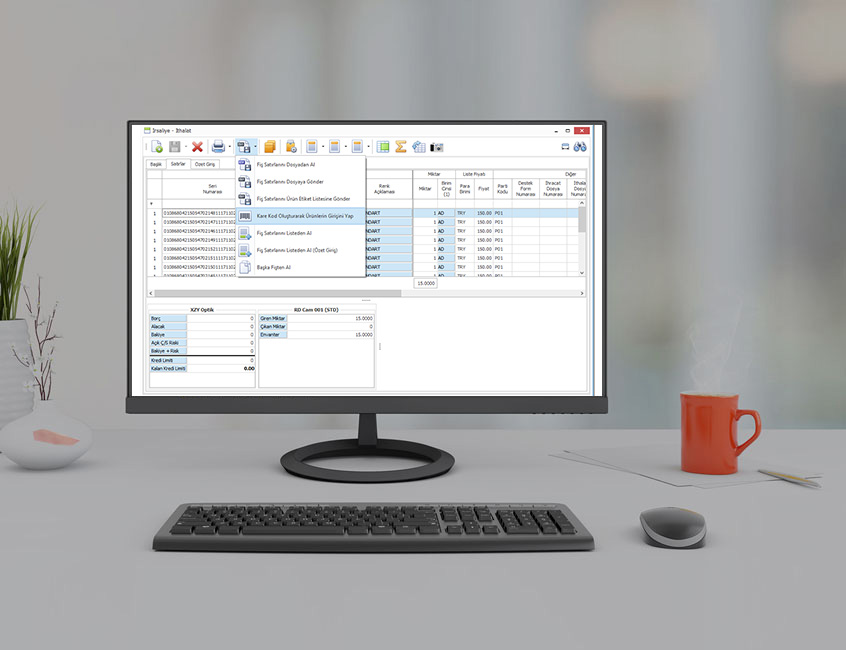 Siparişlerinize bağlı olarak irsaliye ve fatura işlemlerinizi, tedarikçilerden gelen karekod barkodlarını sisteme okutarak direk alım işlemlerini hızlı ve prarik bir şekilde gerçekleştirebilirsiniz.