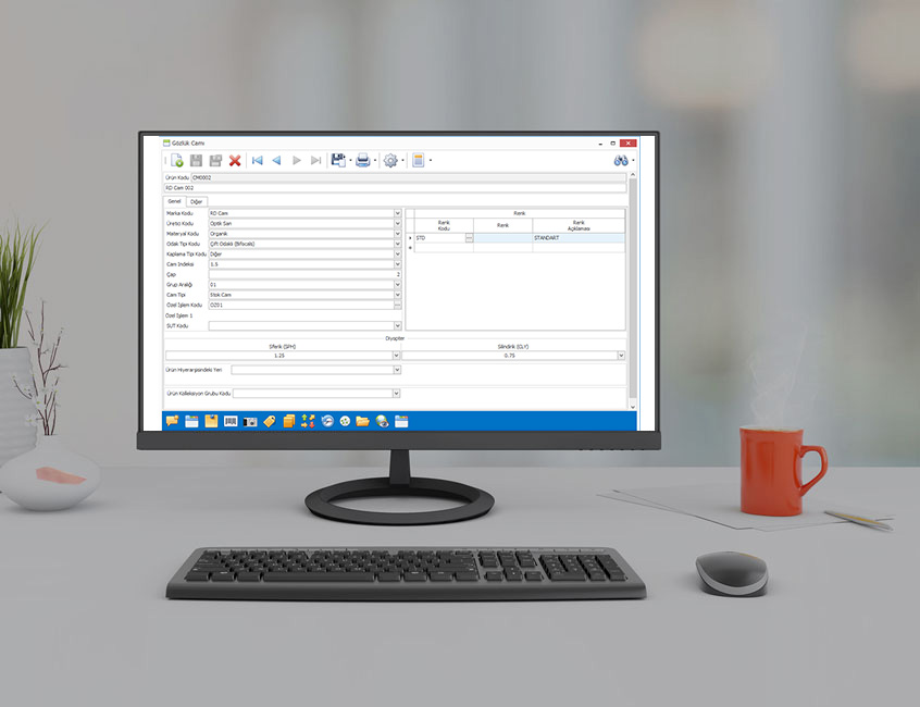 Marka, üretici kodu, materyal kodu, odak tipi, kaplama tipi, çap, cam indeksi, stok cam/RX cam detayı, Sferik ve silindirik değerlerine kadar optik cam ürünlerine ait özellik tanımlamaları yapılabilir ve raporlayabilirsiniz.